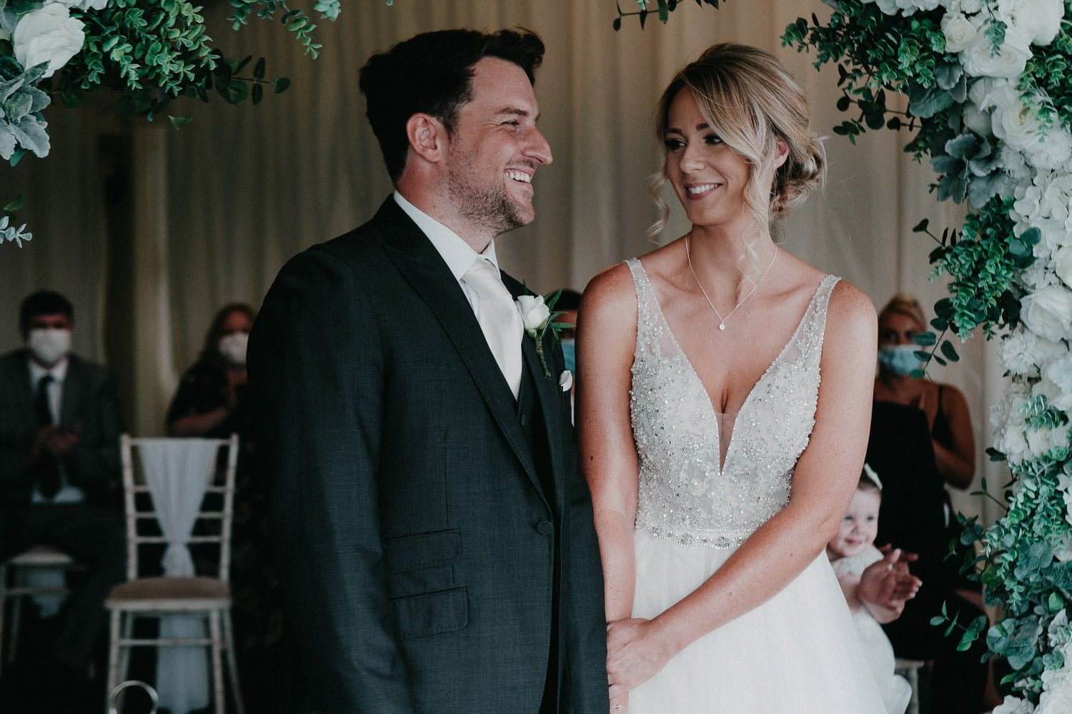 Trish and Stewart decided to go ahead with their wedding on the original date regardless of everything going on and knew the most important thing for them was to be married and celebrate in whatever way they could. They opted for a ‘micro wedding’ (less guests but not less fun or love). I was a little nervous and wasn’t sure exactly how everything would work. Of course I followed all the safety measures and had my rather fetching mask with me the whole day but this was still different to what I was used to. Luckily everyone was amazing and the day felt just as much a loved filled day as any other wedding.