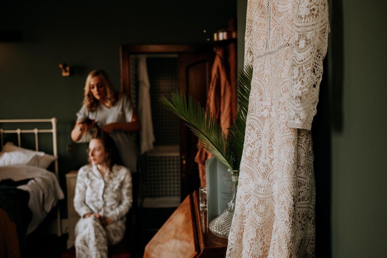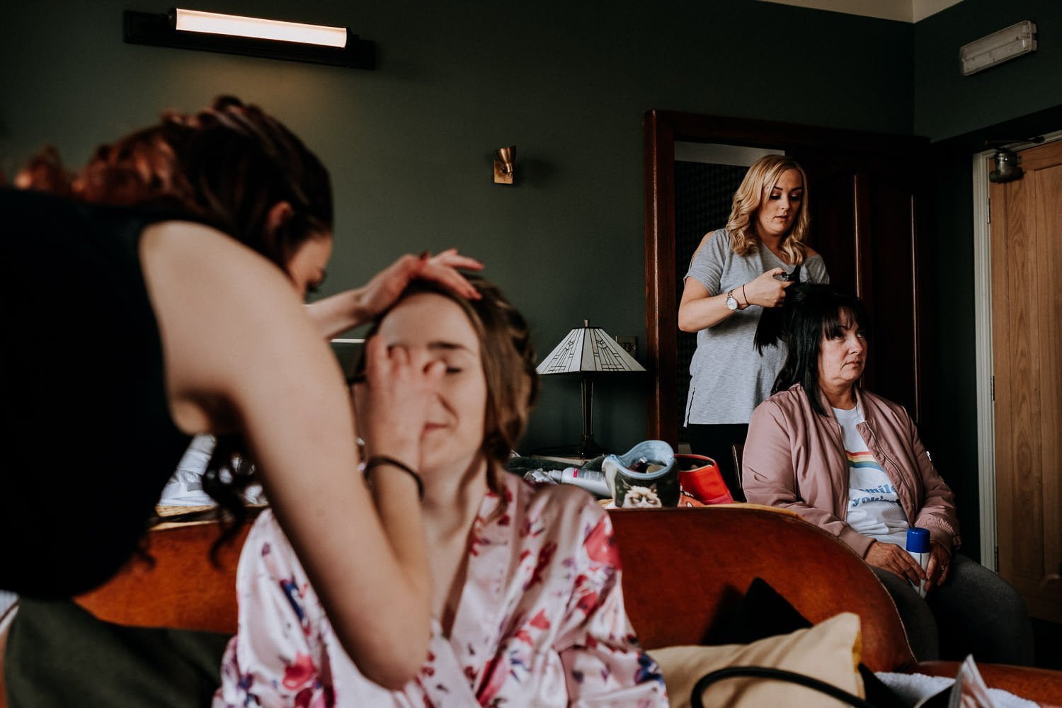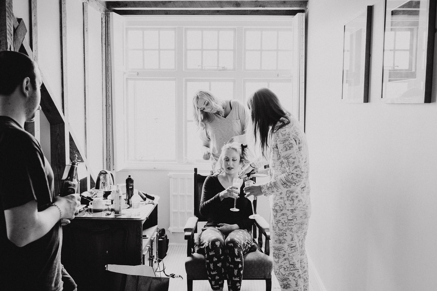 Morning Bridal Prep; Sian and her bridesmaids and groomsmen used the rooms in the hotel to get ready for the wedding.